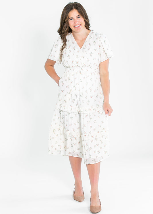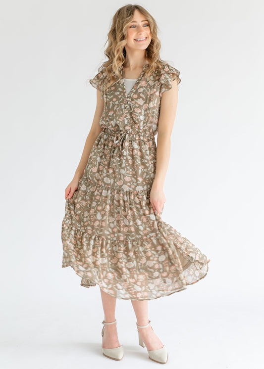 Button Front Floral Tiered Midi Dress - FINAL SALE