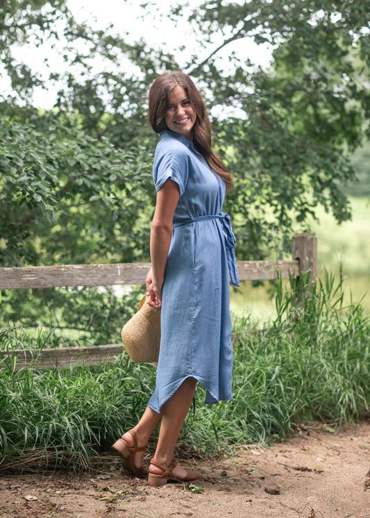 Jack Square Neck Puff Sleeve Denim Midi Dress - FINAL SALE
