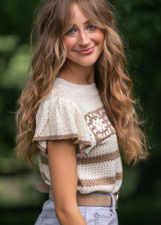 Eyelet Yoke Sweater Knit Top - FINAL SALE
