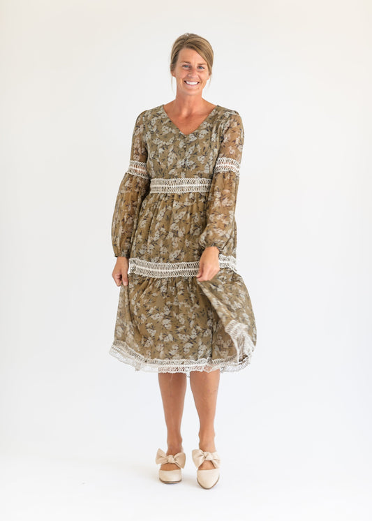 Floral Print Lace Trim Dress - FINAL SALE