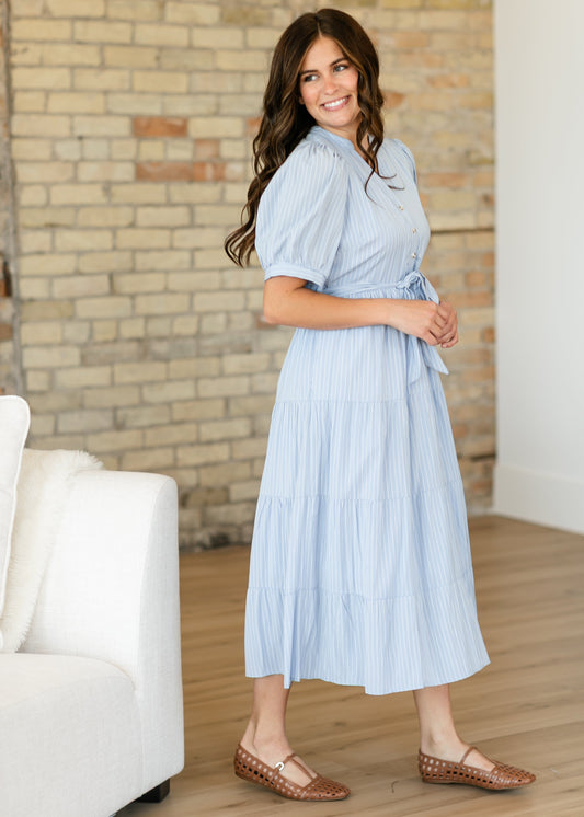 V-neck Waist Tie Striped Maxi Dress - FINAL SALE