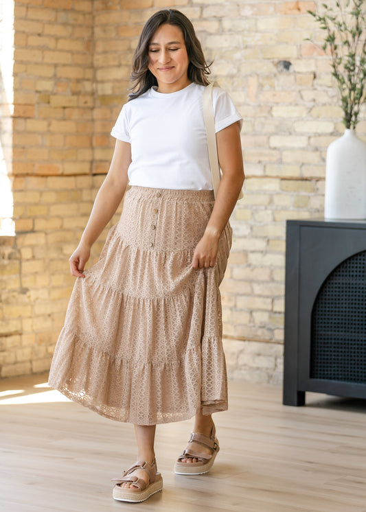 Button Detailed Tiered Lace Skirt - FINAL SALE