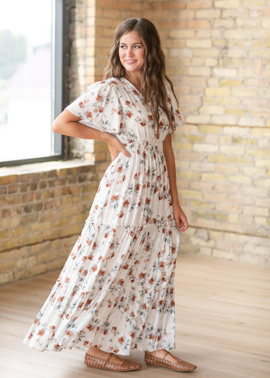 Flower Print Smocked Flutter Sleeve Midi Dress - FINAL SALE