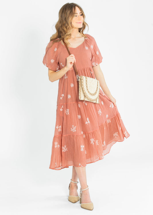 Embroidered Sweetheart Neck Tiered Dress - FINAL SALE