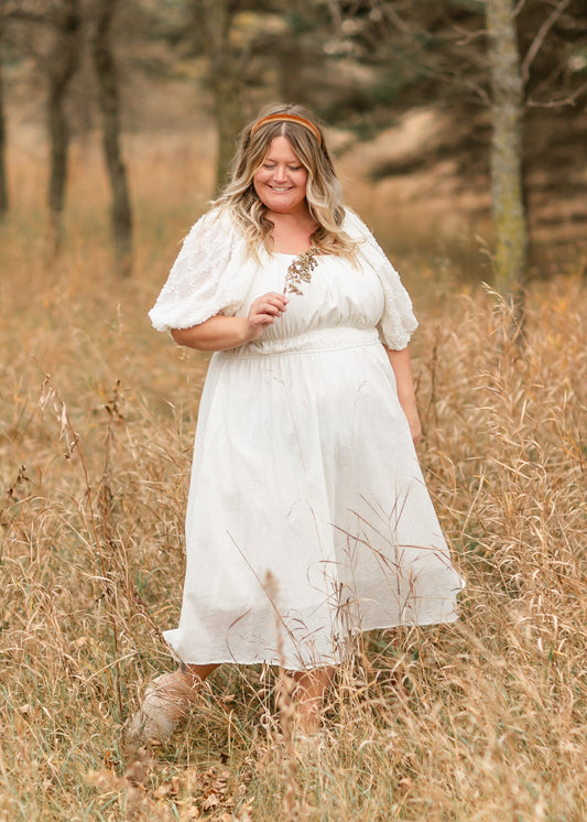 Contrast Puff Sleeve Midi Dress - FINAL SALE