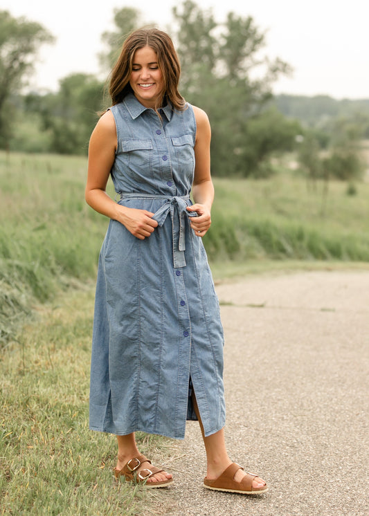 Sleeveless Belted Denim Dress - FINAL SALE
