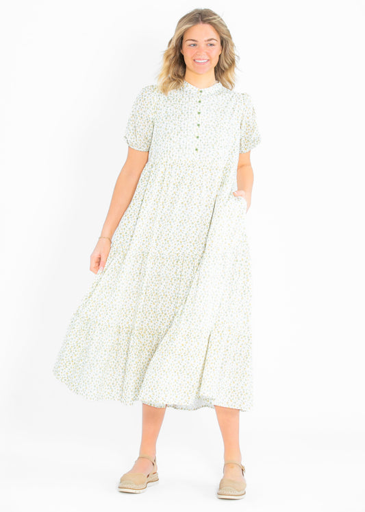 Floral Pintuck Button Front Maxi Dress - FINAL SALE