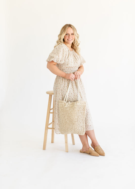 Cream Printed Midi Long Sleeve Dress - FINAL SALE