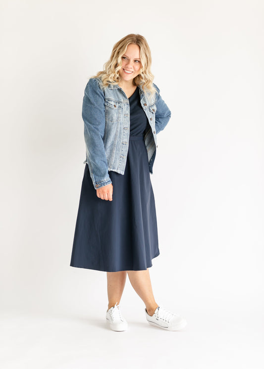 Natalia Button Front Washed Midi Denim Skirt - FINAL SALE
