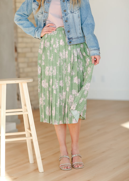 Green Floral Pleated Midi Skirt - FINAL SALE