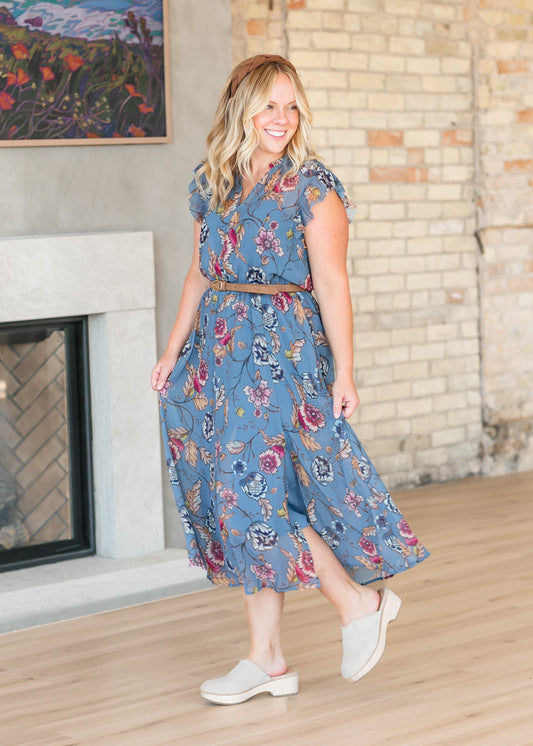 Steve Madden® Allegra Blue V-neck Midi Dress - FINAL SALE