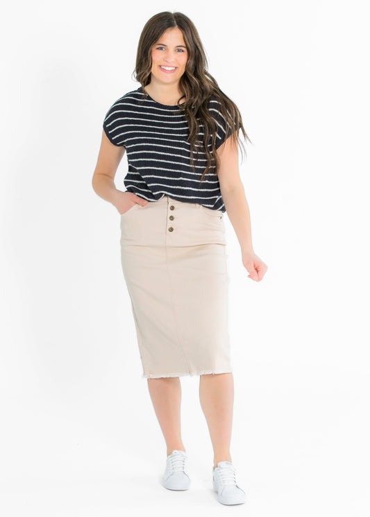 Palmer Striped Pleats Midi Skirt - FINAL SALE