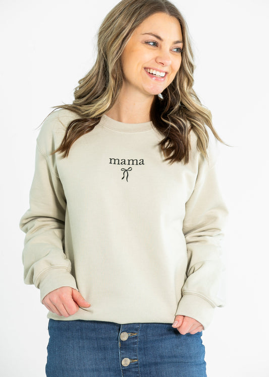 Embroidered Mama Crewneck Coquette Bow Sweatshirt - FINAL SALE