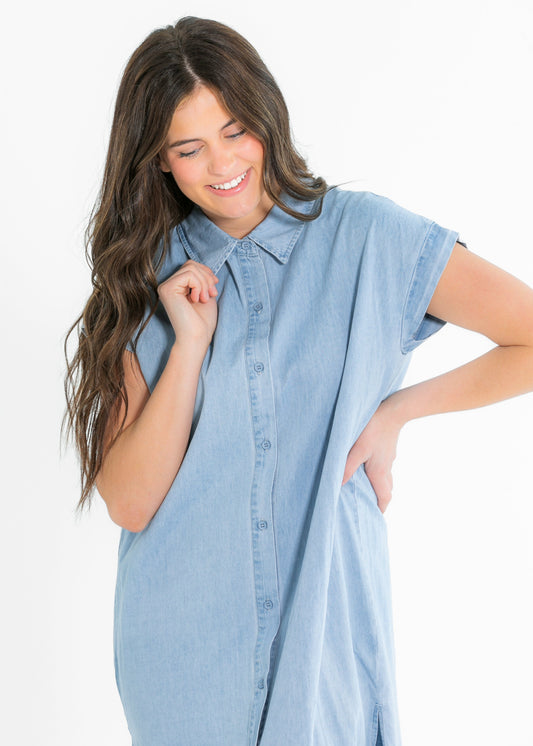 Energize Button Chambray Shirt Dress - FINAL SALE