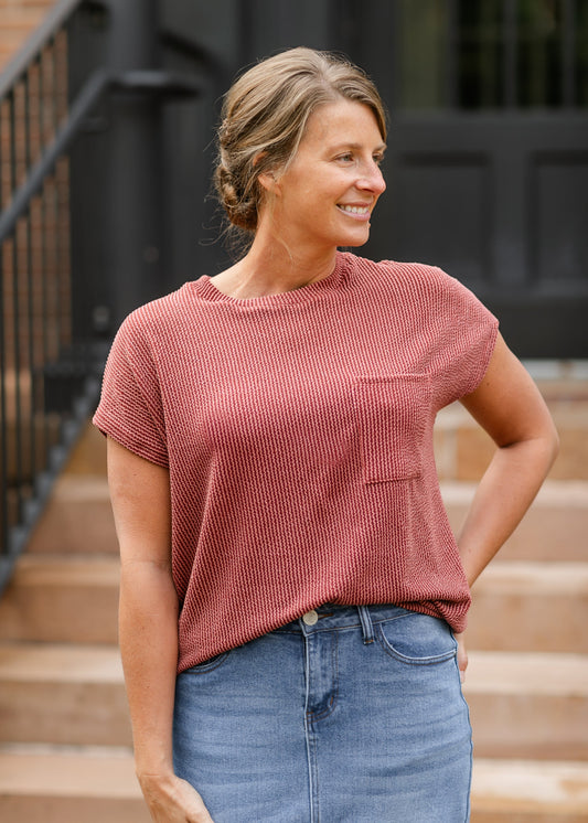 Cori Ribbed Short Sleeve Front Pocket Top - FINAL SALE