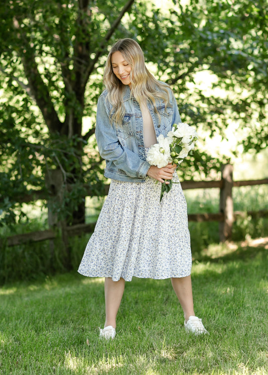 Harlow Blue Floral Tiered Midi Skirt - FINAL SALE