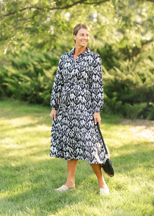 Tiered Button Up Abstract Print Shirt Dress - FINAL SALE