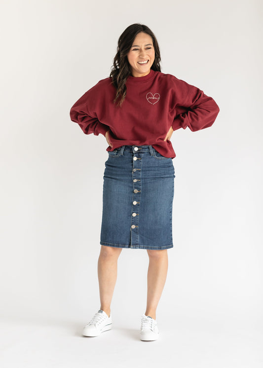 Embroidered Love Mom Crewneck Sweatshirt - FINAL SALE