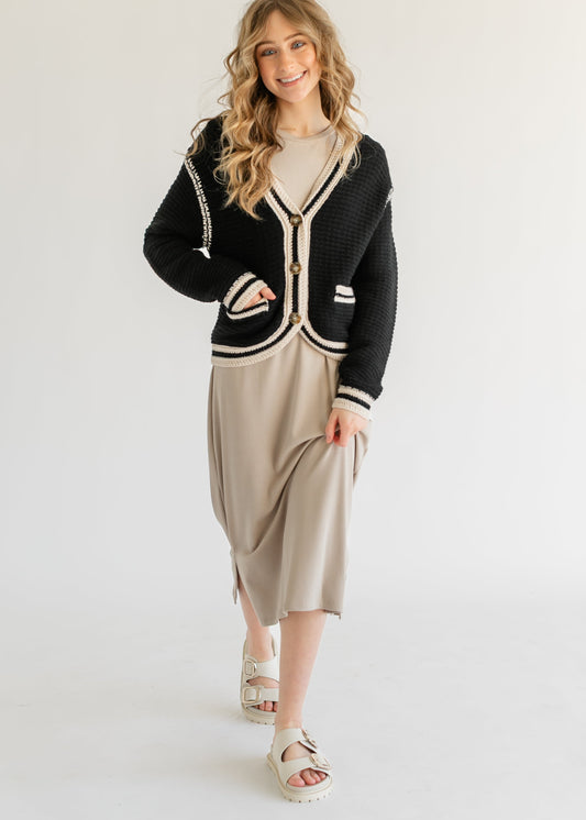 Heartloom® Kenya Button Front Contrast Stripe Cardigan - FINAL SALE