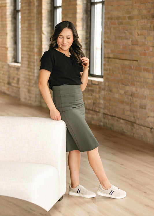 Pleated Pull-On Midi Skirt - FINAL SALE