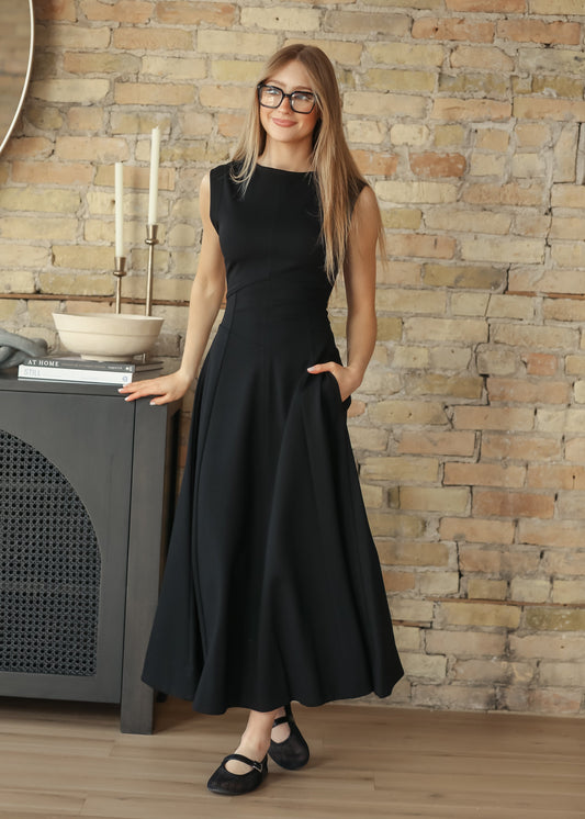 elan Camilla Black Midi Dress