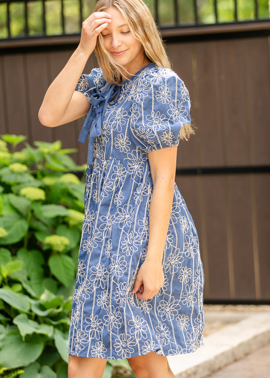 Textured Floral Print Bubble Sleeve Dress - FINAL SALE