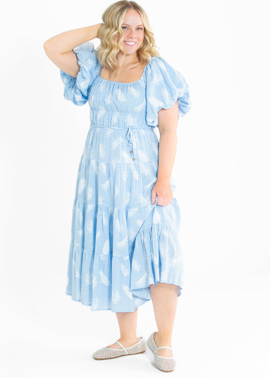 Rhea Leaf Print Puff Sleeve Tiered Midi Dress - FINAL SALE