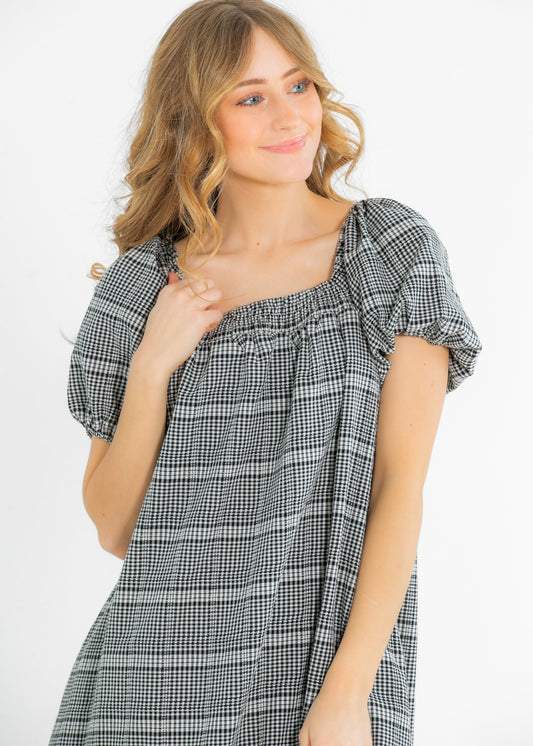 Riley Black Checkered Short Sleeve Dress - FINAL SALE