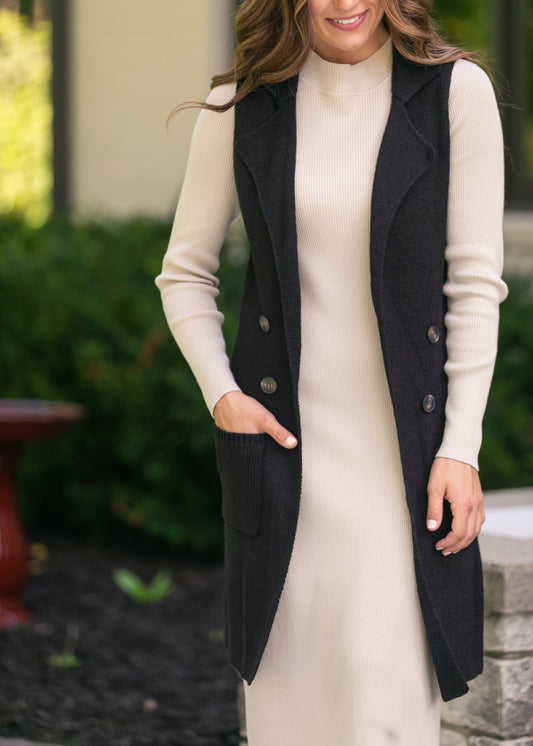 Sleeveless Notched Collar Long Sweater Vest