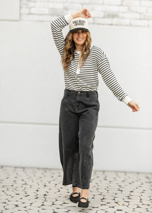 Henley Stripe Snap Knit Top