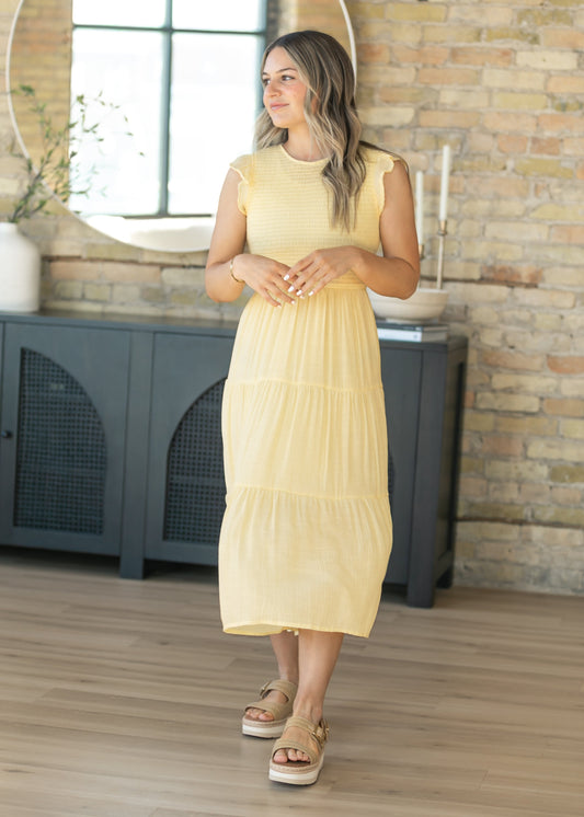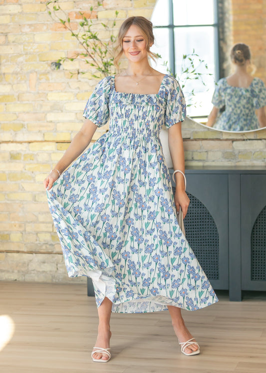 Sherelle Cloud Square Neck Smocked Midi Dress