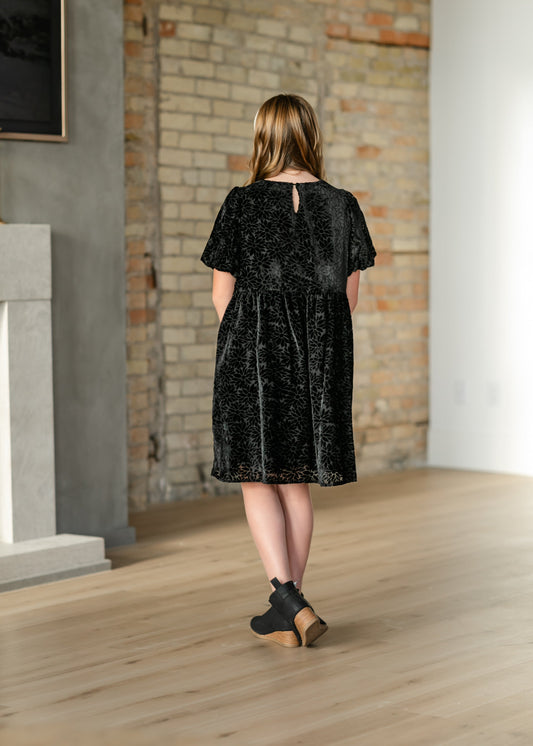 Girl's Velvet Floral Short Sleeve Dress - FINAL SALE
