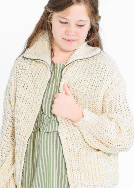 Girl's Zip-up Cream Knit Sweater - FINAL SALE