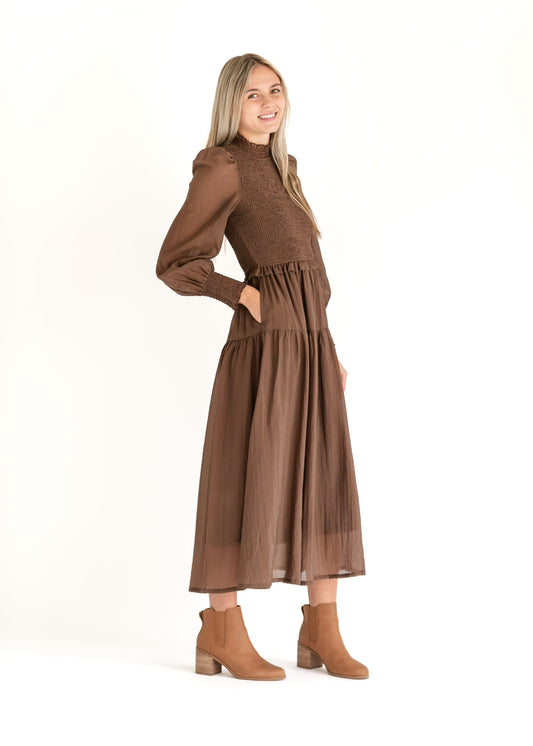 Mockneck Smocked Long Sleeve Dress - FINAL SALE