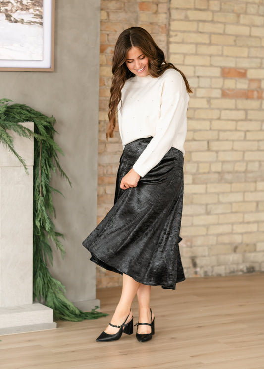Crinkle Satin Black A-line Skirt - FINAL SALE