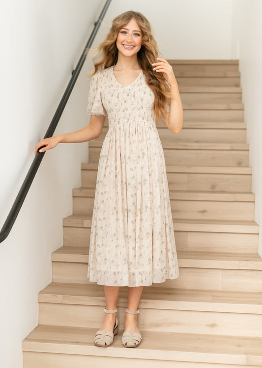 Jacey Long Sleeve Smocked Waist Maxi Dress