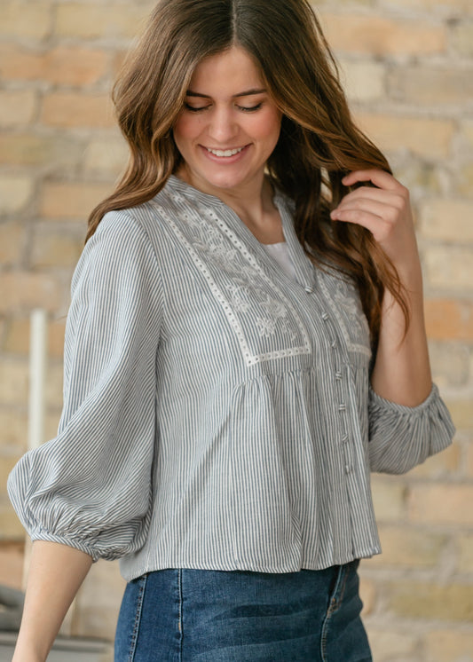 Embroidered Button Up Woven Top