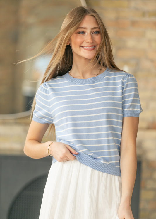 Blue Stripe Puff Sleeve Top