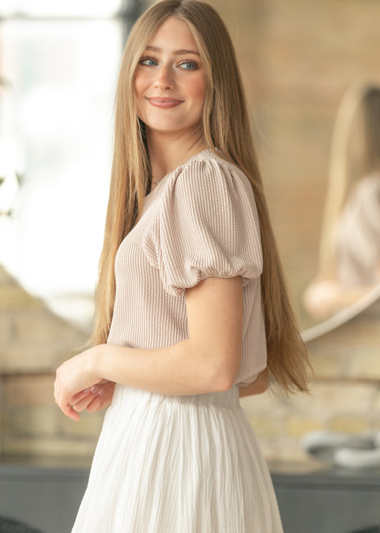 Taupe Ribbed Puff Sleeve Top